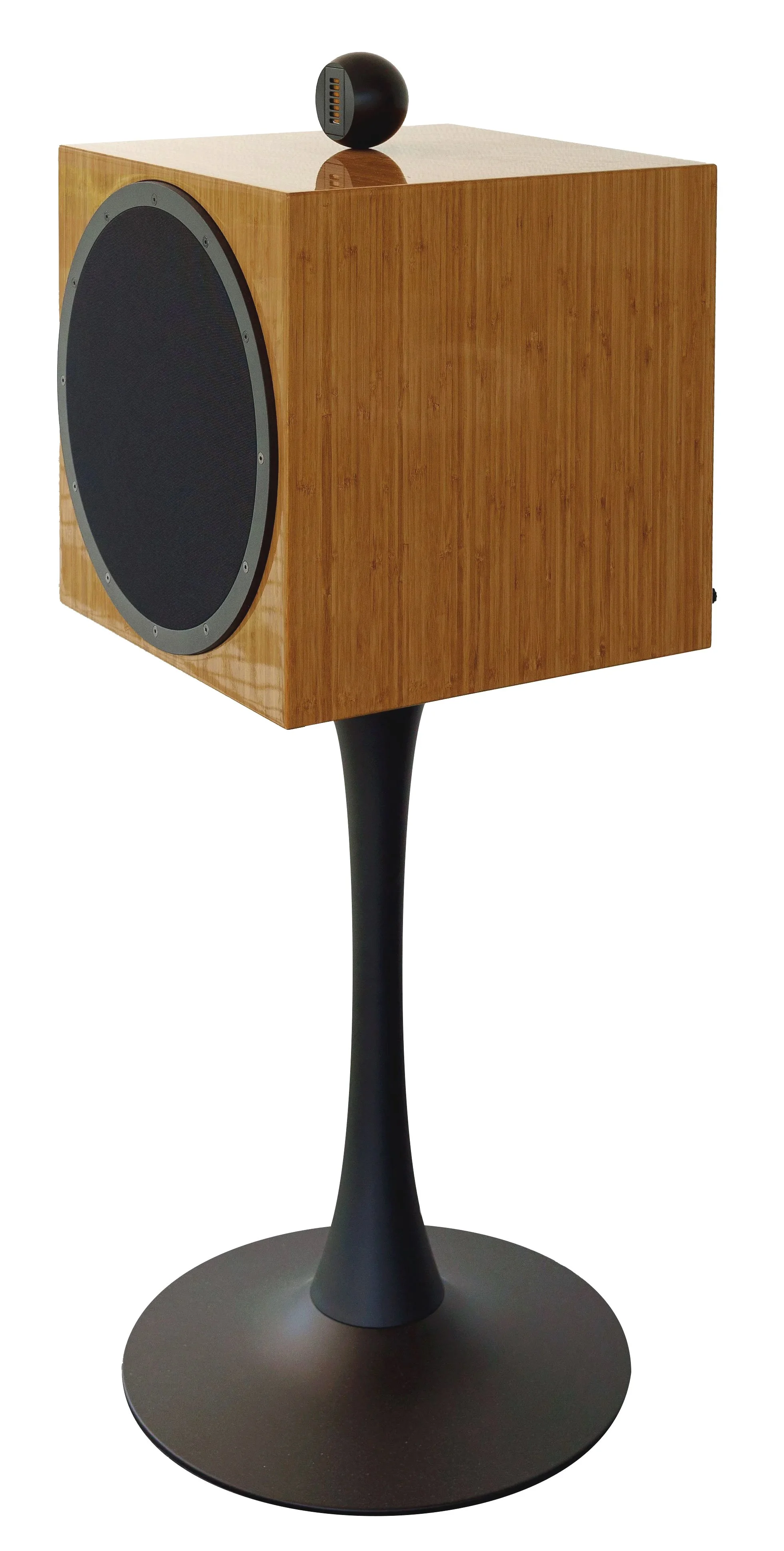 The solid, cross-laminated Moso bamboo cabinet houses the technically superior bass-midrange driver. A precision sphere made of a semi-crystalline polymer and an integrated magnetostat tweeter ensure breathtaking airiness. The fine pattern of the bamboo appears in a unique way thanks to eight layers of high-gloss lacquer that have been sanded and smoothed again and again.